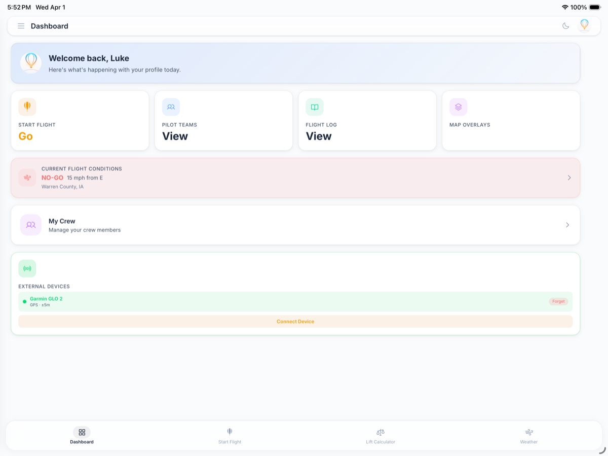 Weather intelligence, live GPS tracking, zone alerts, competition task sheets, crew coordination — everything a balloon pilot needs in one app.